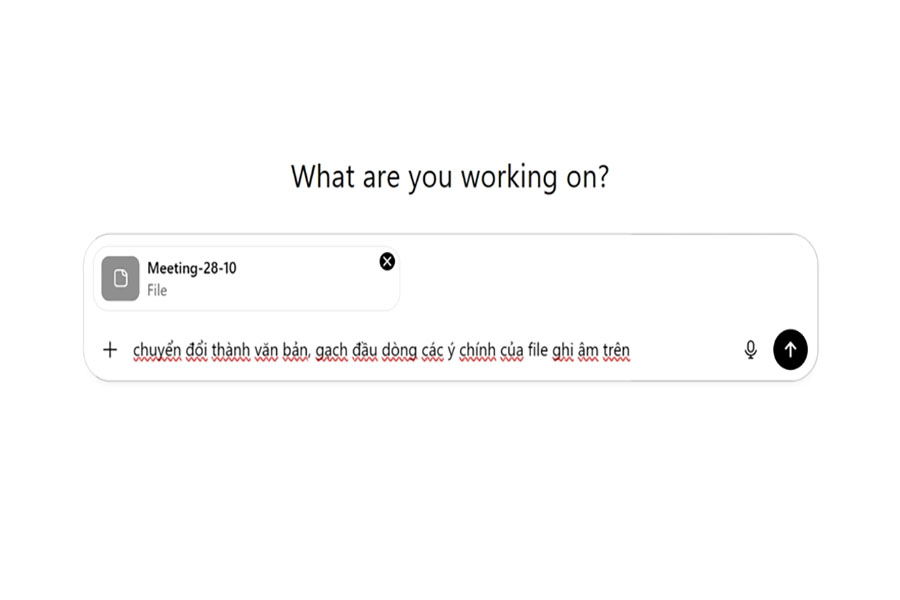 Bạn đã bao giờ nghĩ: sau cuộc họp hoặc call với khách hàng, thay vì mất thời gian ghi chép, muốn có bản tóm tắt tức thì? Tính năng này sẽ giúp bạn. Với ChatGPT, bạn có thể ghi âm hoặc upload bản ghi cuộc họp, rồi yêu cầu ChatGPT tạo bản tóm tắt, phân tích, đề xuất hành động.