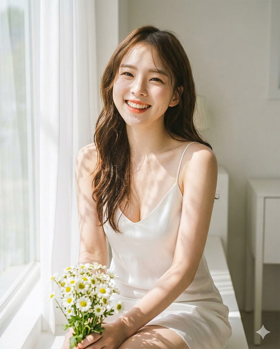 Đặc biệt, váy trắng giúp tôn lên sự tinh khôi, ánh sáng và cảm xúc – yếu tố cực kỳ quan trọng trong ảnh AI.