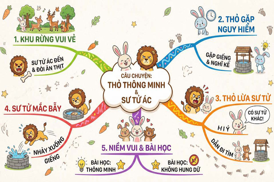 Ngay sau đó chúng ta có được hình ảnh sơ đồ mindmap từ ngữ cảnh câu chuyện đang sử dụng. Cuối cùng thầy cô chỉ cần tải xuống để sử dụng cho bài giảng của mình.
