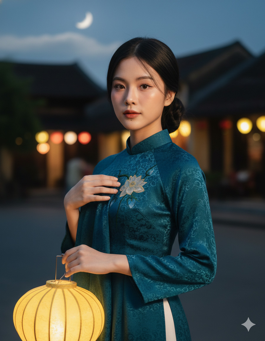 Câu lệnh 10: Áo dài đêm xuân, ánh đèn lồng & trăng non (Phong cách điện ảnh nghệ thuật)
