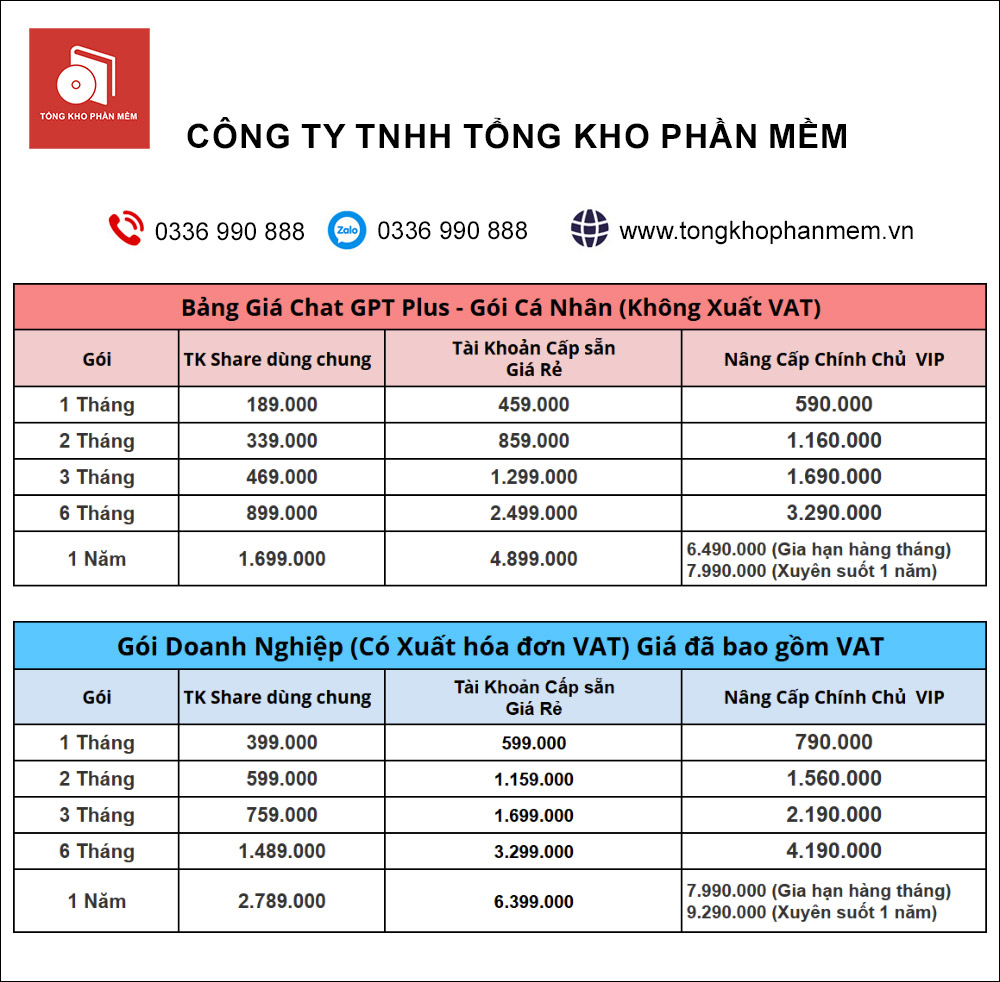 Việc nâng cấp tài khoản ChatGPT Plus là một lựa chọn đúng đắn cho những ai mong muốn khai thác tối đa tiềm năng của trí tuệ nhân tạo. Với khả năng xử lý nhanh chóng, hiểu biết sâu sắc về ngôn ngữ và tính linh hoạt trong nhiều lĩnh vực, ChatGPT Plus thực sự là một cộng sự đắc lực dành cho bất kỳ ai. Liên hệ ngay với Tổng Kho Phần Mềm để nâng cấp ngay với giá rẻ nhé!