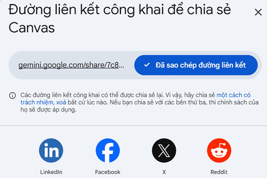 Sau khi hoàn thiện, bạn có thể chia sẻ trò chơi của mình với người khác một cách rất dễ dàng. Trong Canvas sẽ có nút Chia sẻ (Share), chỉ cần nhấn vào là hệ thống sẽ tạo một đường link công khai.