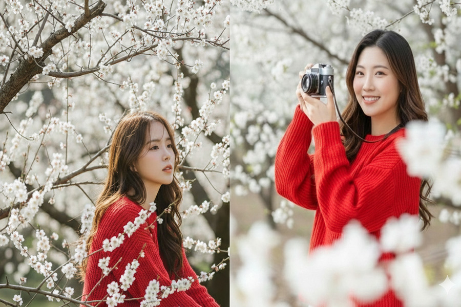 Expression: Smiling slightly, eyes looking straight at the lens → feeling gentle, graceful
