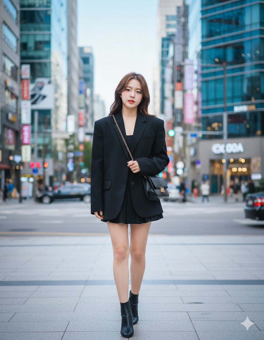 Location: Modern Korean street (Hongdae / Gangnam vibe).