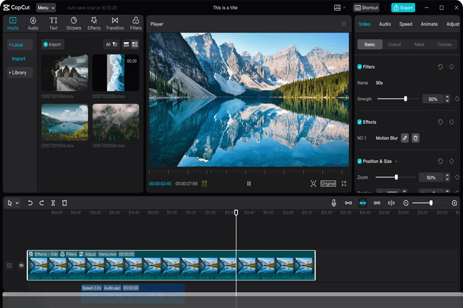 Nhiều hiệu ứng & mẫu có sẵn: Cung cấp sẵn kho filter, transition, template giúp video sinh động mà không cần chỉnh tay nhiều.