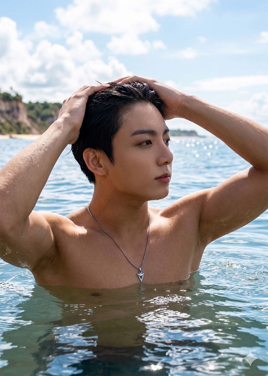 Negative prompt: distorted face, unrealistic body proportions, exaggerated muscles, cartoon style, anime look, plastic skin, artificial HDR glow, luxury resort background, crowded beach, extreme fashion styling, harsh studio lighting.