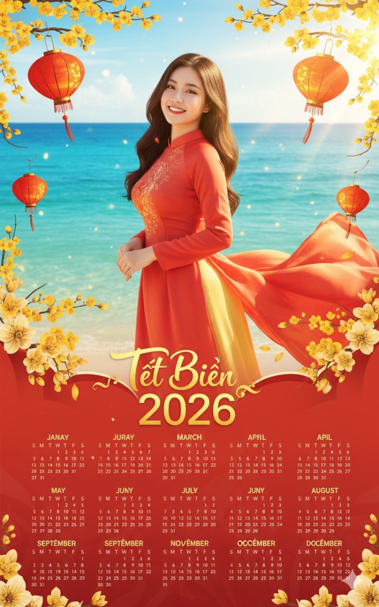 Prompt 8: Lịch Tết 2026 Phong Cách Biển Nắng - Nha Trang