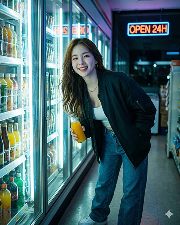 Một trong những trào lưu đang gây sốt gần đây chính là tạo ảnh AI trong siêu thị. Bối cảnh siêu thị với ánh đèn neon, các kệ hàng đầy màu sắc, cùng không gian hiện đại tạo nên những khung hình cực kỳ ấn tượng. Khi kết hợp cùng AI như Gemini, những bức ảnh tưởng chừng rất đời thường lại trở nên “cool ngầu” và mang đậm chất nghệ thuật.